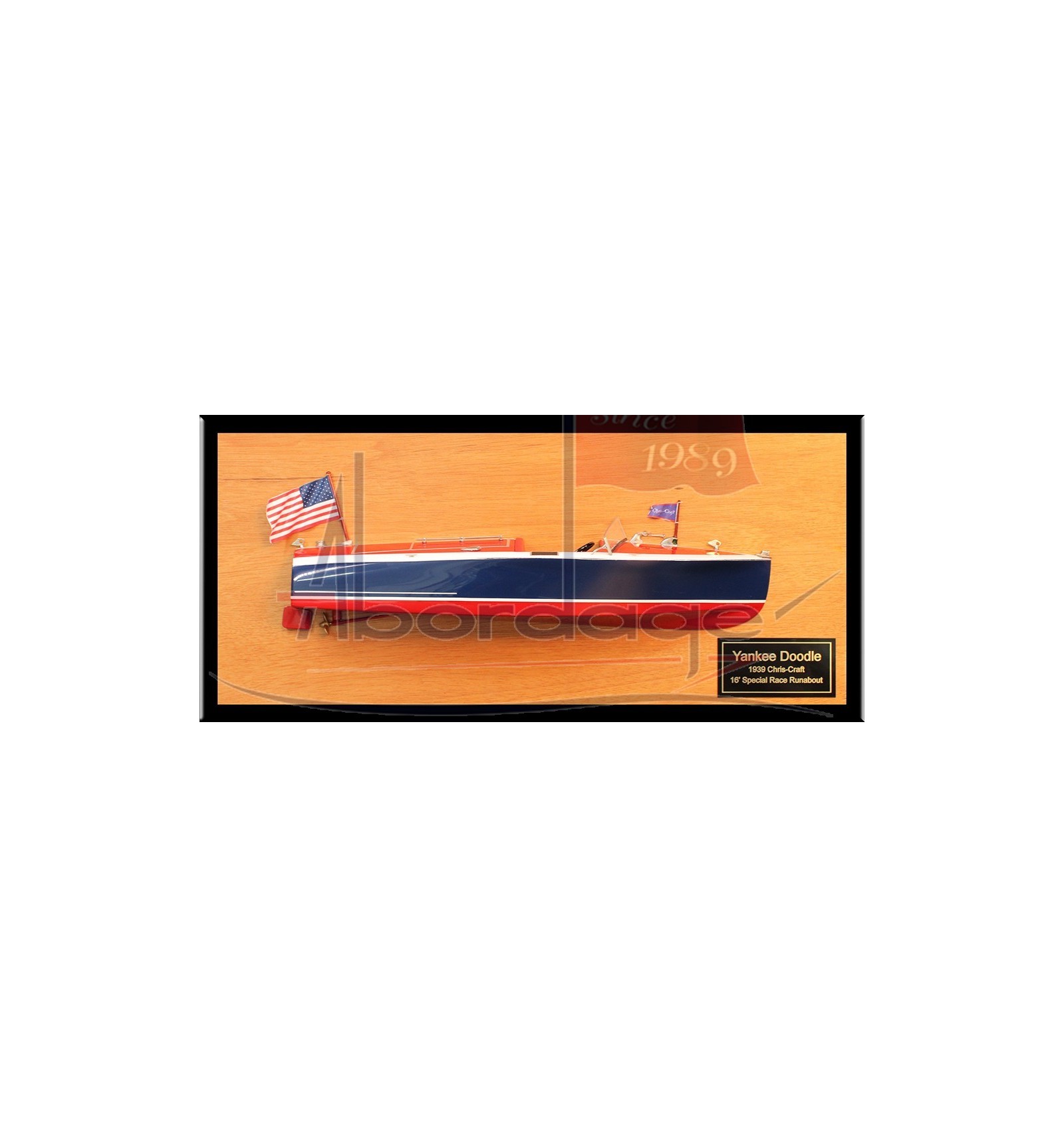 Unleash the spirit of speed and style with our remarkable Chris Craft 16’ Special Race Runabout of 1939, now available as a stunning 12 inches wooden half-hull replica!