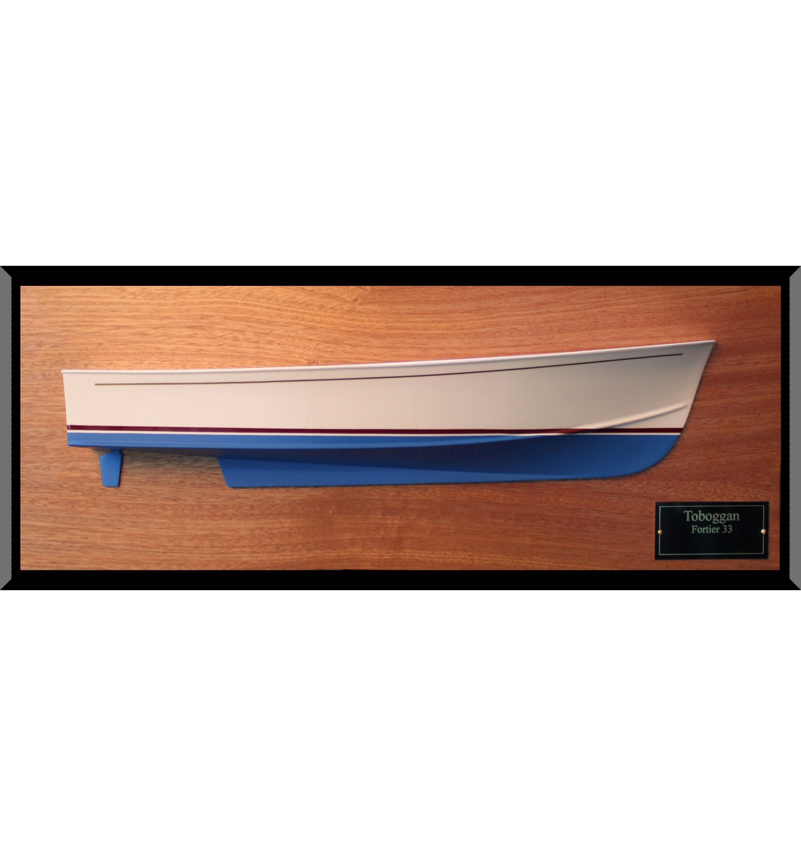 Observe this alluring custom half hull of the Fortier 33, built upon request at scale 1/24 or 16,5 inches LOA.