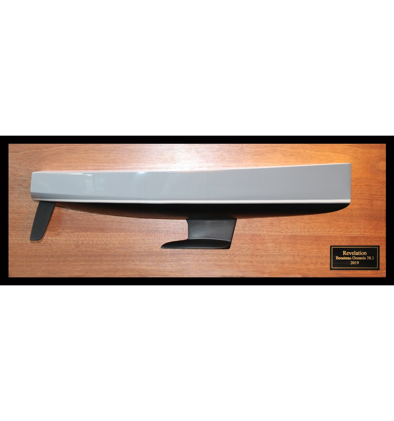 Gaze at this remarkable custom half hull of the Beneteau Oceanis 38.1, built upon request at scale 1/24 or 19 inches LOA.