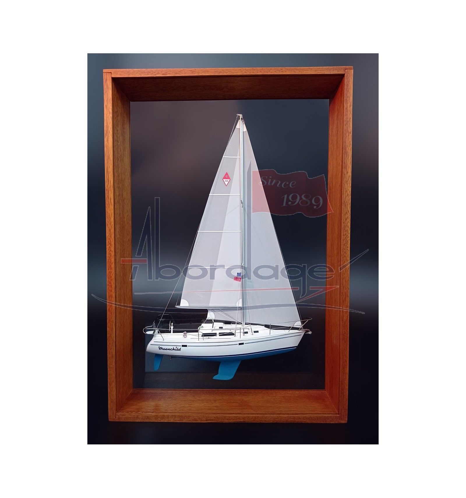 Look at this astonishing framed half model of the Catalina 320 built upon request at scale 1/32 or 12 inches LOA.