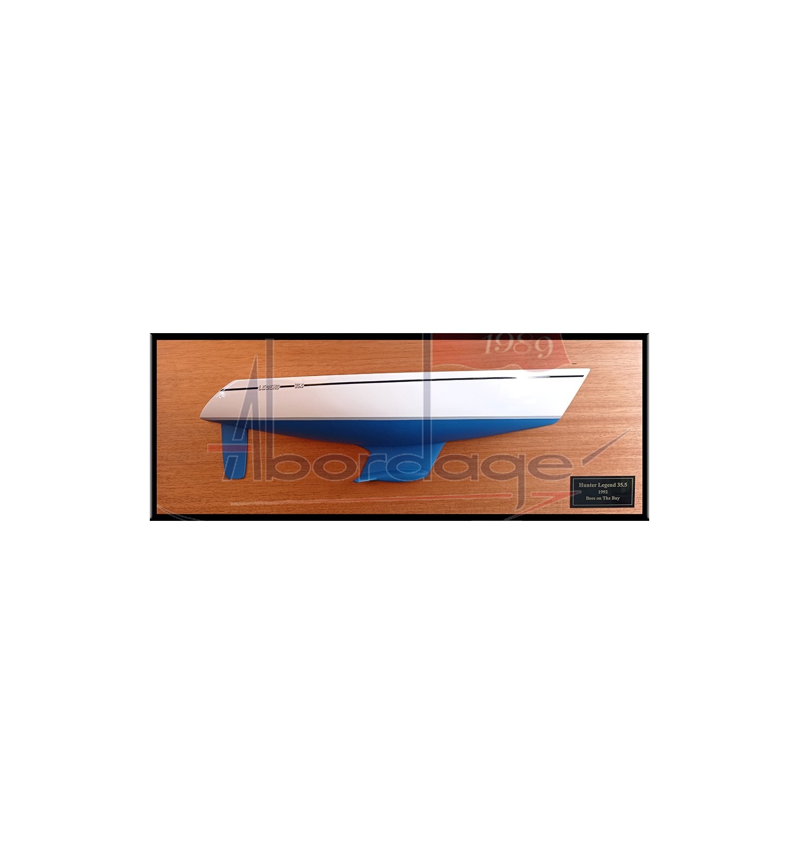 Spot this wonderful custom half hull with no deck detail of the Hunter Legend 35.5, built upon request at scale 1/24 or 18 inches LOA.