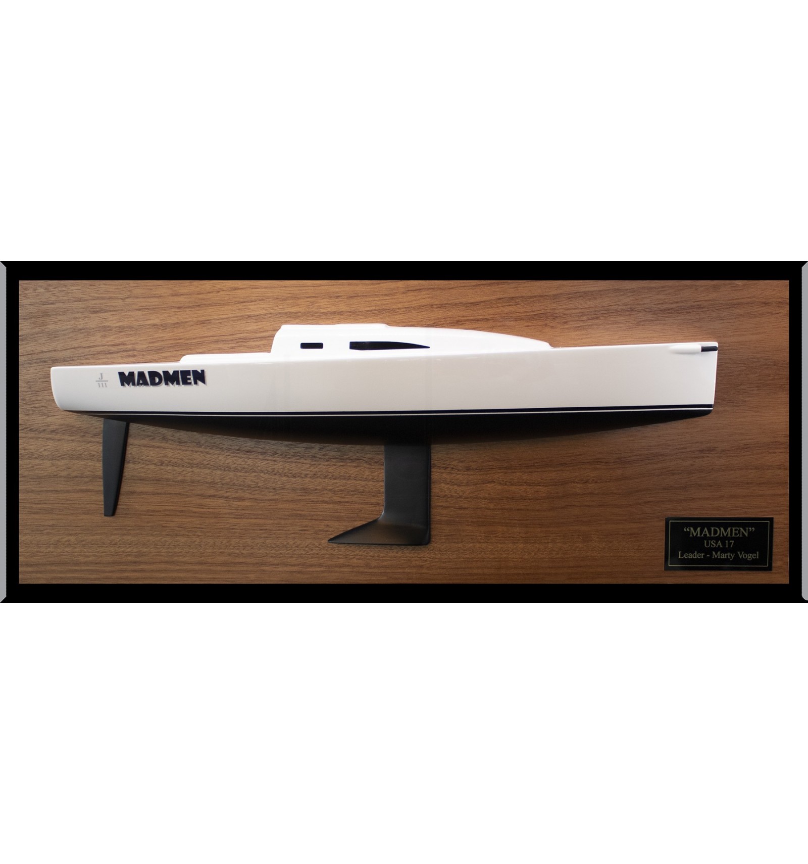Take a look at this flawless custom half hull of the J-111 built upon request at scale 1/24 or 18 inches LOA.
