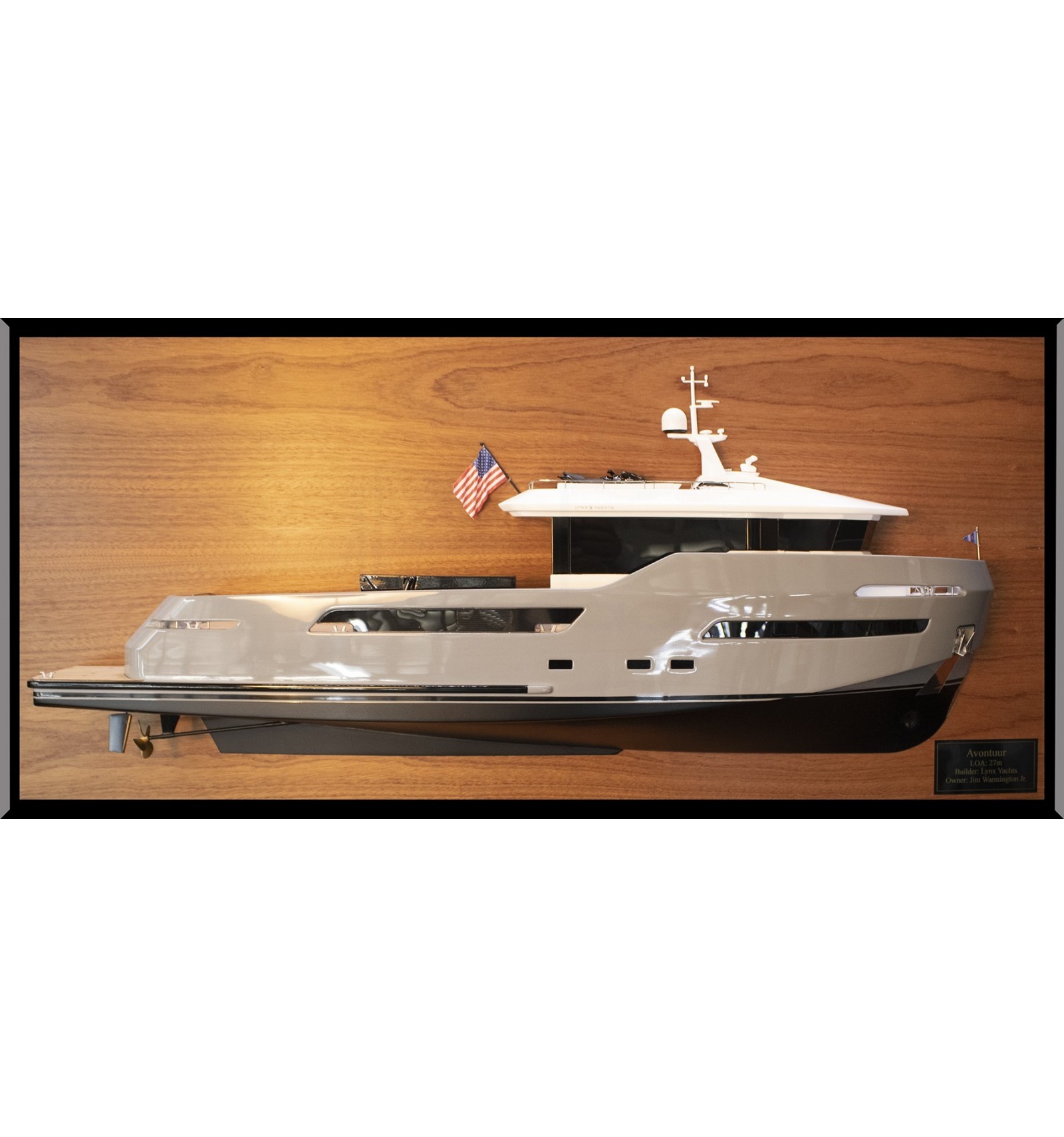 Discover this astonishing custom half model with deck details of the Lynx Yachts AVONTUUR Crossover 27 Yacht, built upon request at scale 1/32 o 33-34 inches LOA.